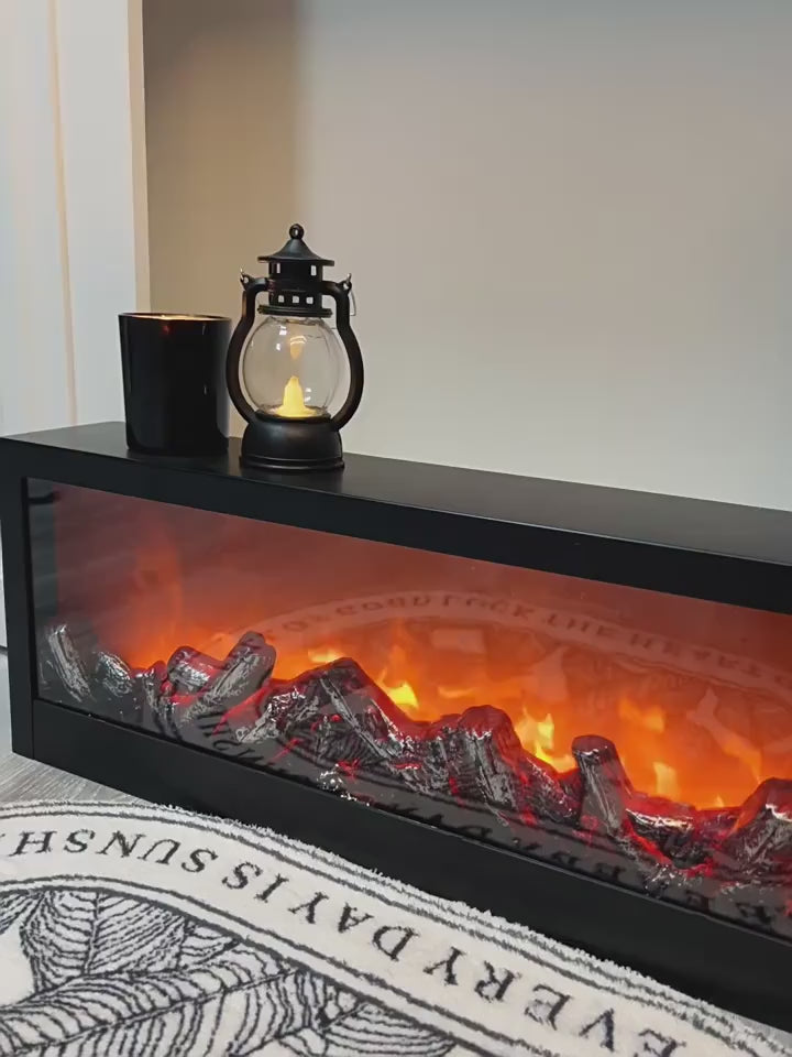 Lampă Ambientală Decorativă în Stil Art Deco, Lumina de 60cm/23.6in pentru Șemineu, Alimentare USB, Silențioasă și Fără Fum, Abajur Plastic Dreptunghiular, Temă Fantastică, Control cu Buton, pentru Decorul Casei, Halloween, Decor de Crăciun, Potrivită pentru Diverse Tipuri de Camere, Cadou pentru